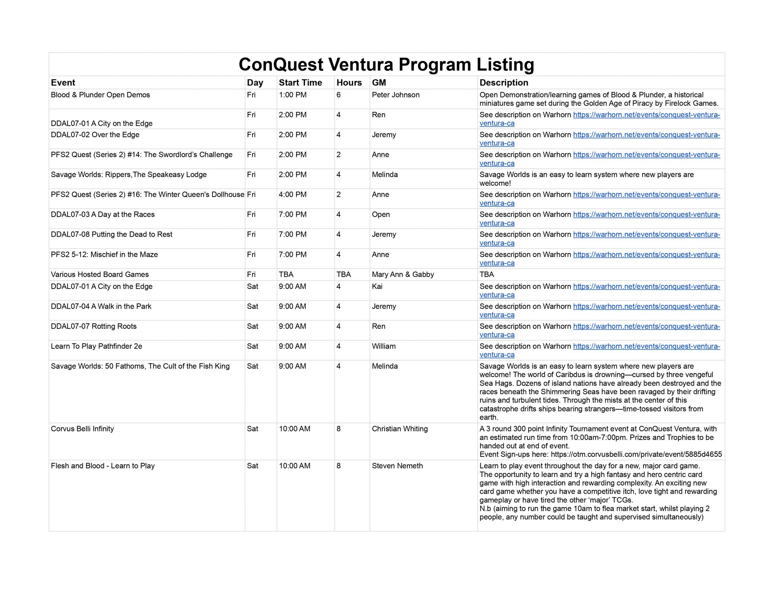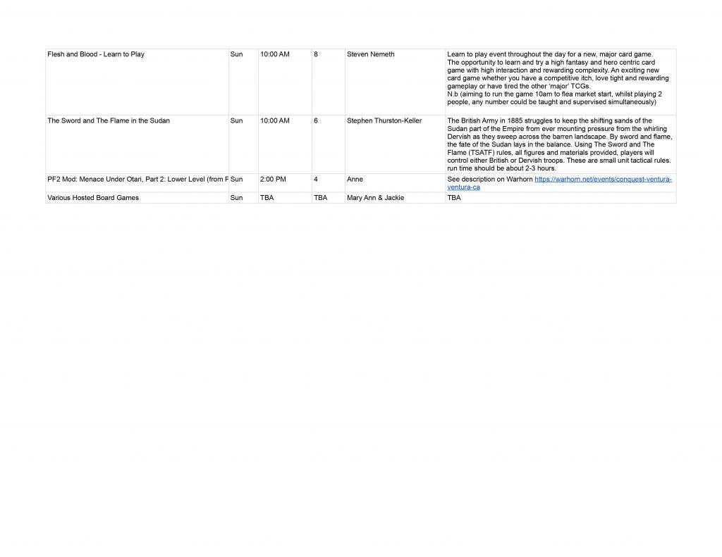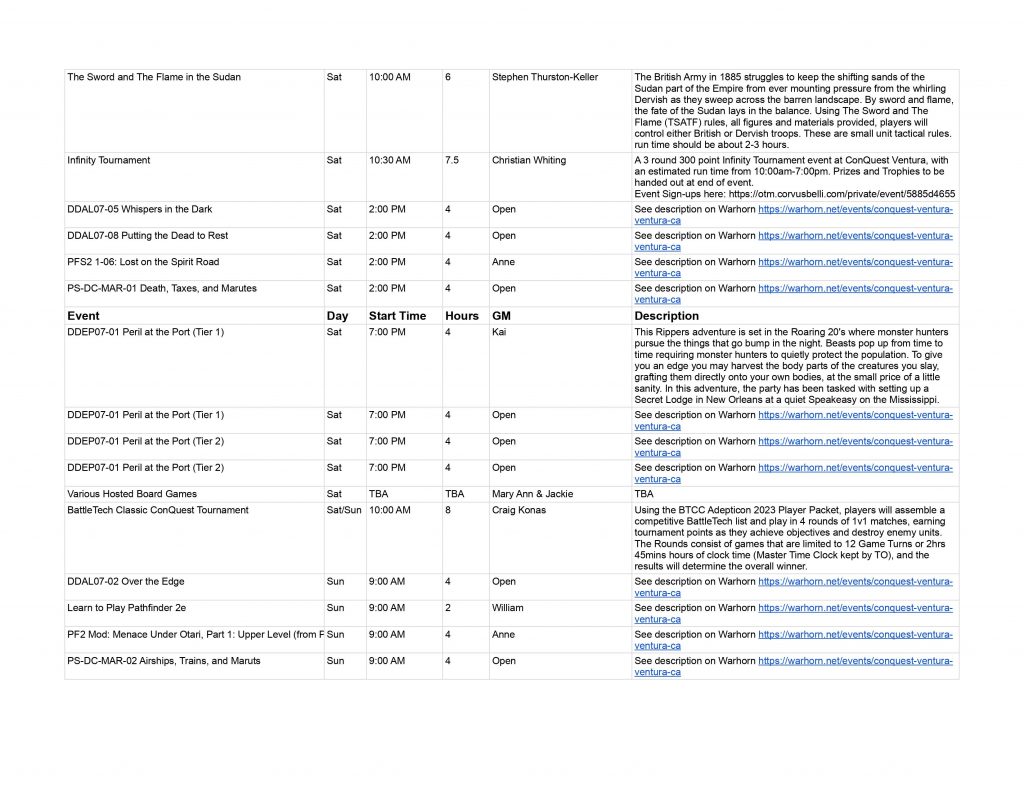 Tabletop Gaming Events